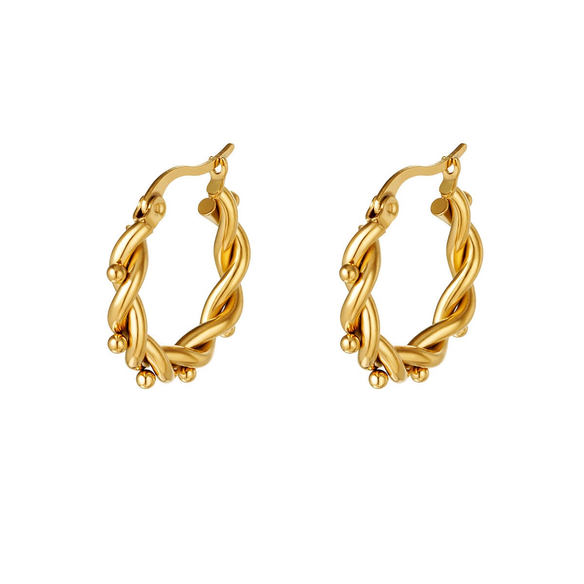 Trendy twisted oorringen met bolletjes van roestvrij staal.